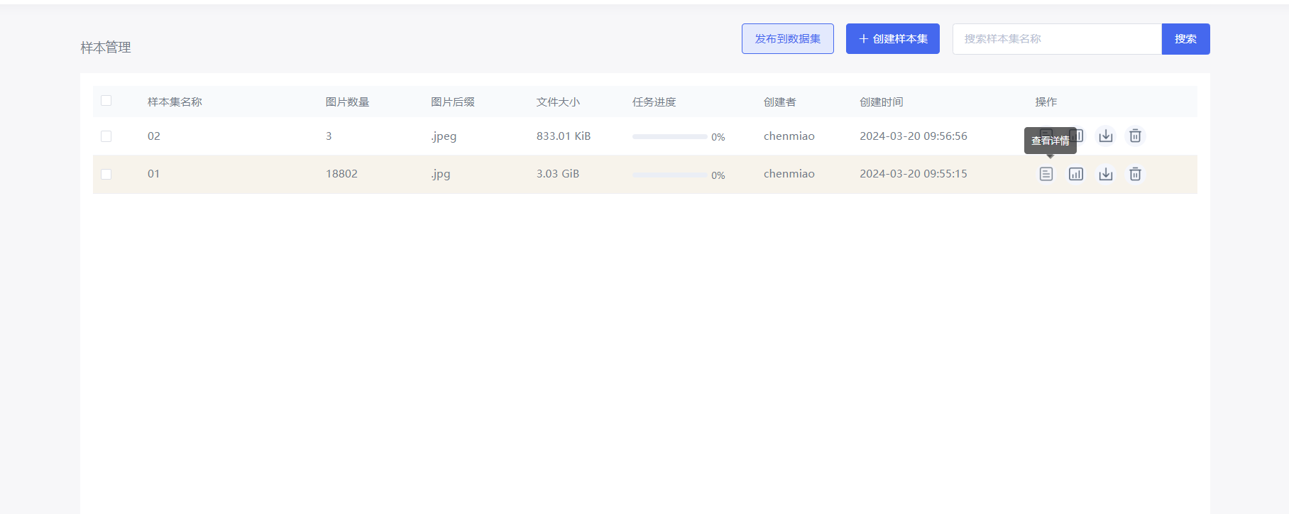 样本集创建成功后,点击查看详情按钮,进入标注详情页面
