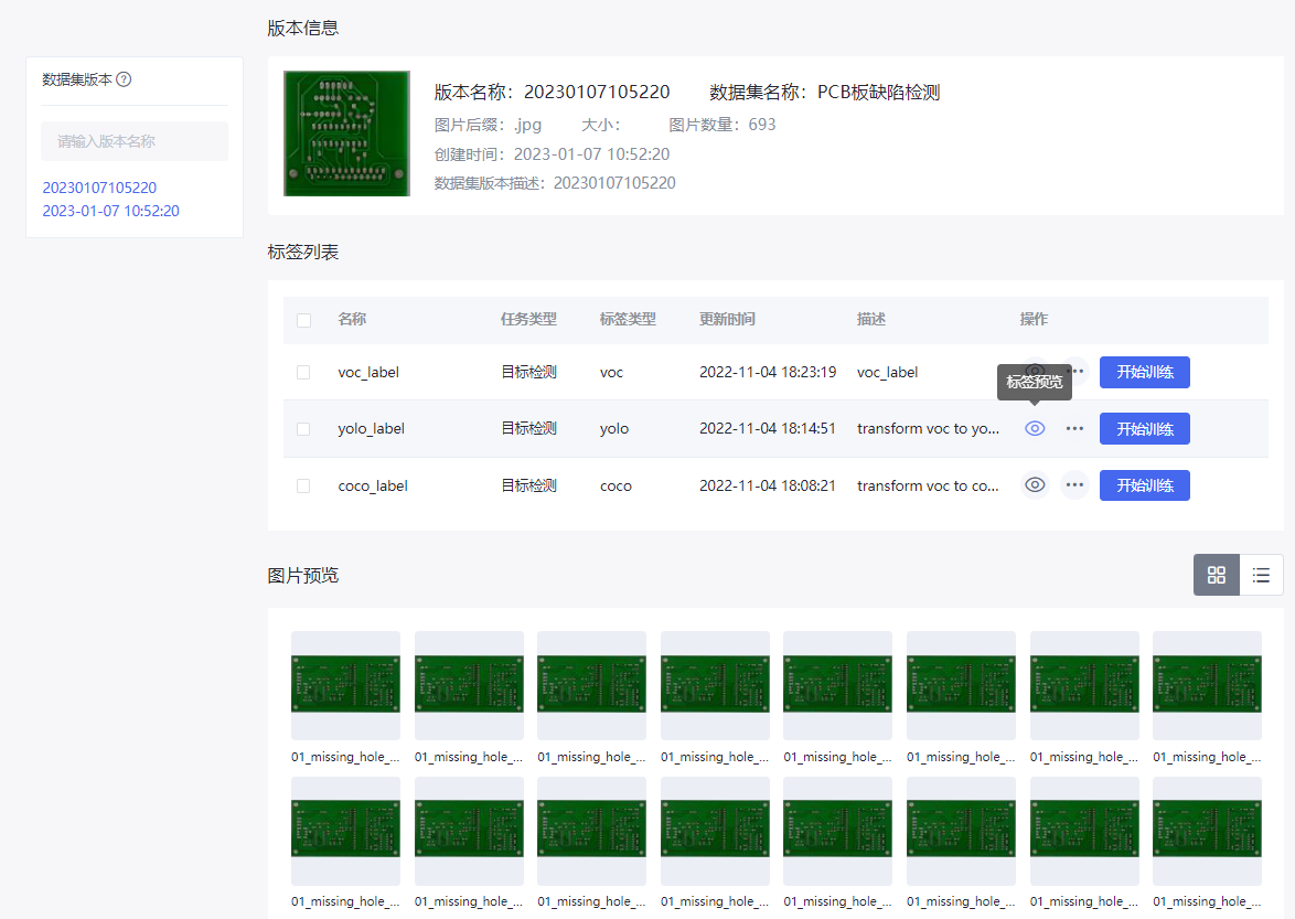 数据检查(可选步骤)。在数据集详情页,选择标签,点击标签预览图标,进行标签预览,检查是否存在错标、漏标等问题。